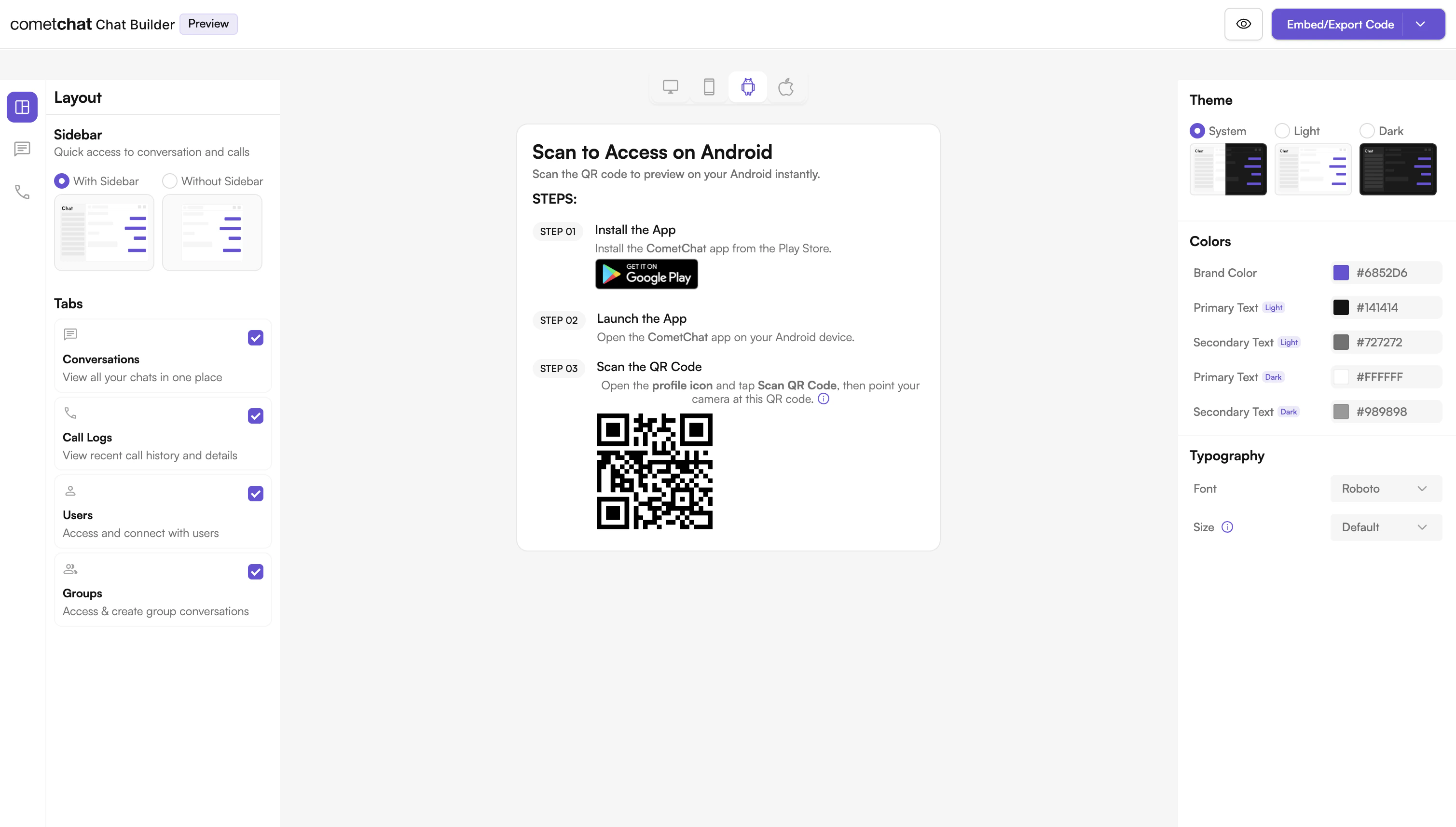 Experience the CometChat UI Kit Builder in action:Launch Live Demo