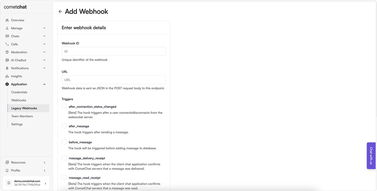 To manage webhooks using the CometChat dashboard: