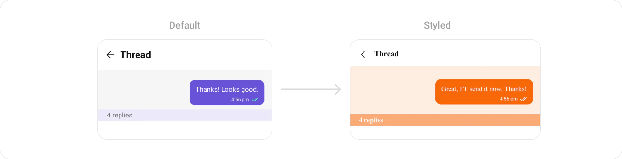 CometChat UIKit enables developers to seamlessly integrate customizable components into their applications. Each component is designed to ensure a consistent user experience while offering flexibility to adapt to your app’s design system. You can modify attributes such as colors, fonts, sizes, icons, and more using XML or programmatically. Below is a detailed guide for styling individual components within the UIKit.Components