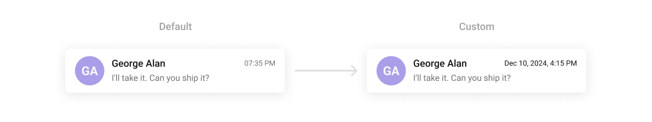 TheCometChatDate Component formats and displays timestamps in conversation lists and message threads. It ensures time-related information is clear and consistent. Developers can customize its text appearance, alignment, and colors to fit various contexts.