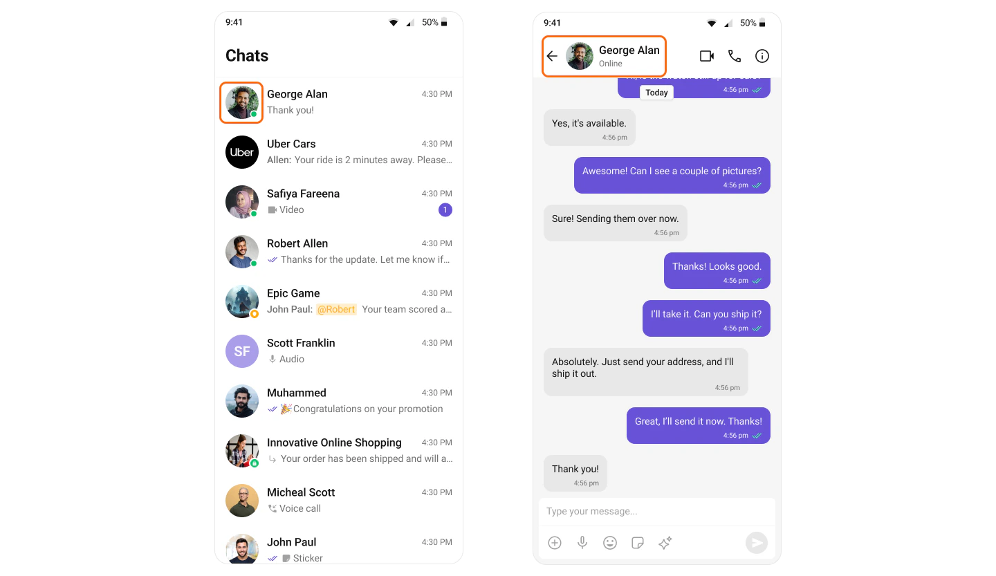 CometChat’s User Presence feature allows users to see whether their contacts are online, offline. This helps users know the best time to initiate a conversation and sets expectations about response times.