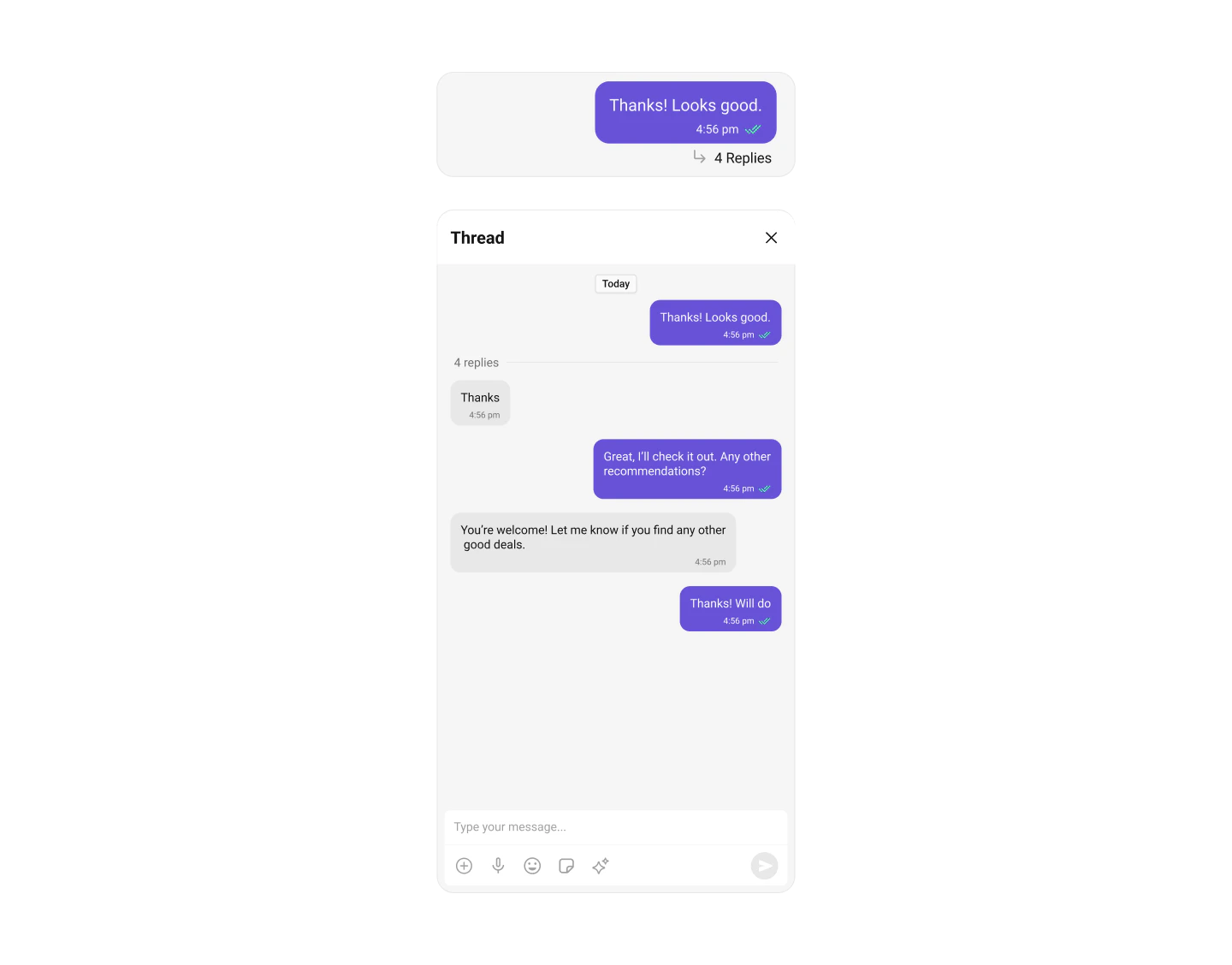 | Threaded Header | Threaded Header that displays all replies made to a particular message in a conversation. |