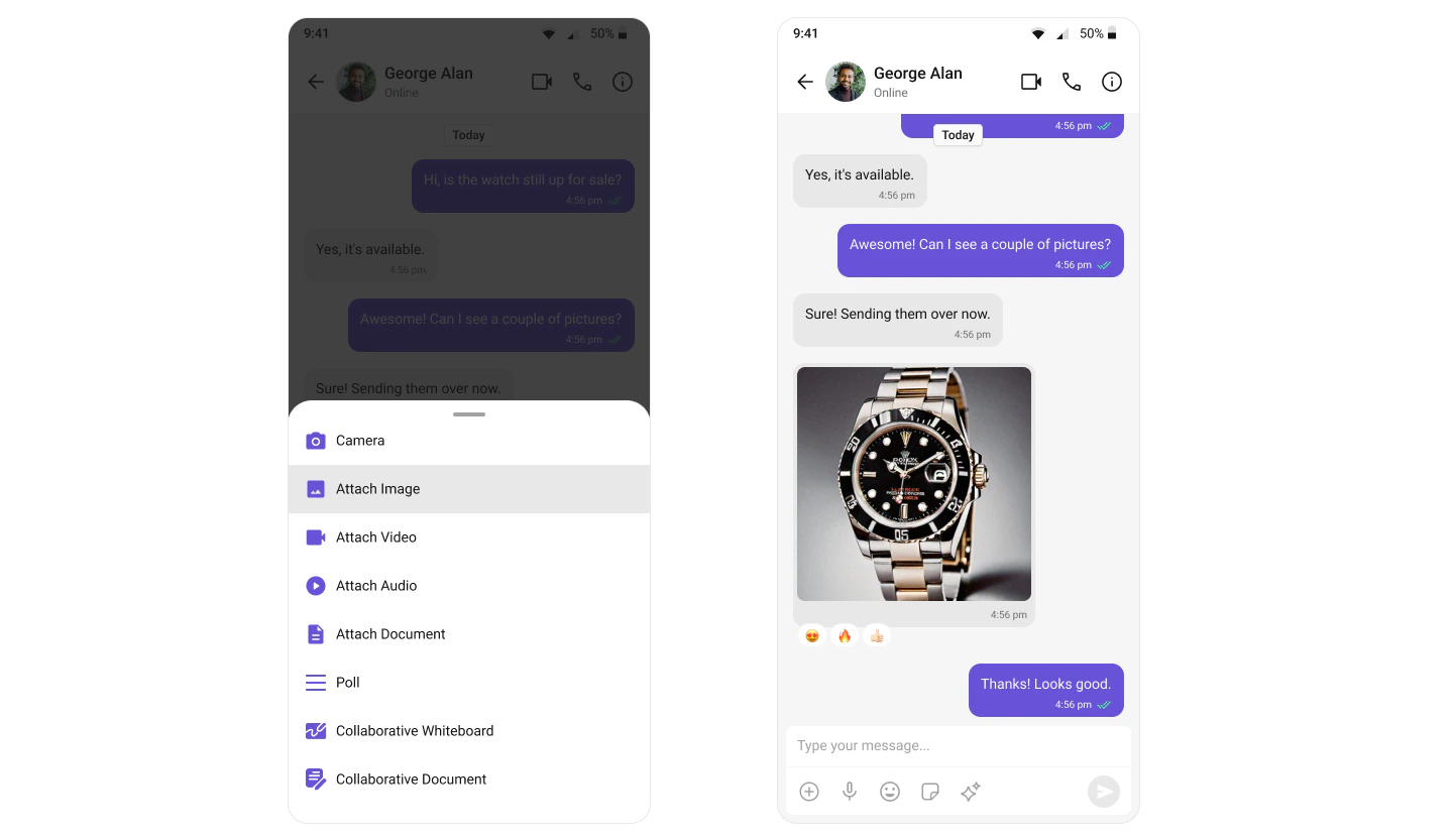 Beyond text, CometChat allows users to share various media types within their conversations. This includes images, videos, audio files, and documents, enriching the chat experience and enabling more comprehensive communication.