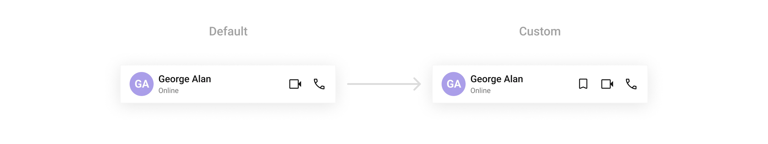 Allows adding a custom button or additional action next to the title or trailing section. Use Cases:- Add a Call button (📞) for quick voice/video calls.