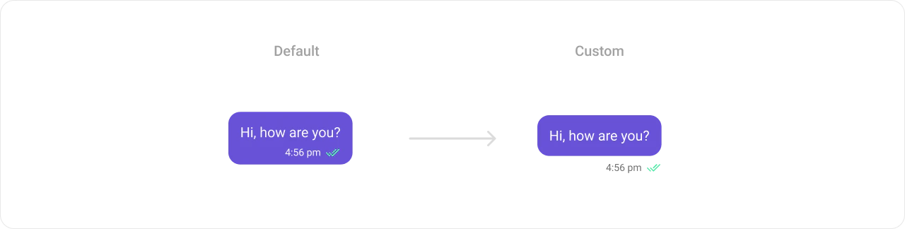 .setFooterView()method allows you to assign a custom Footer view to the MessageBubble. By default, it displays the receipt and timestamp.