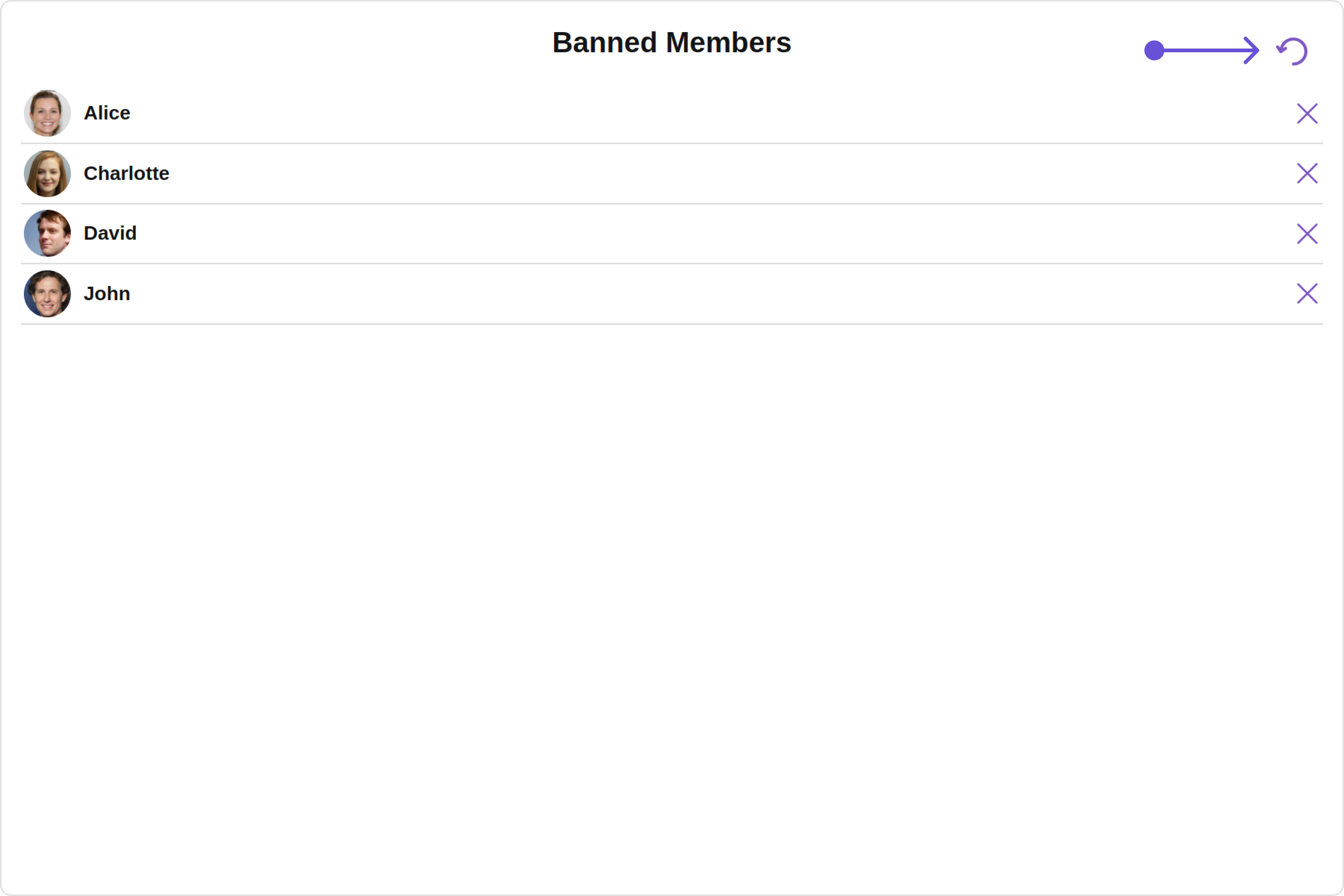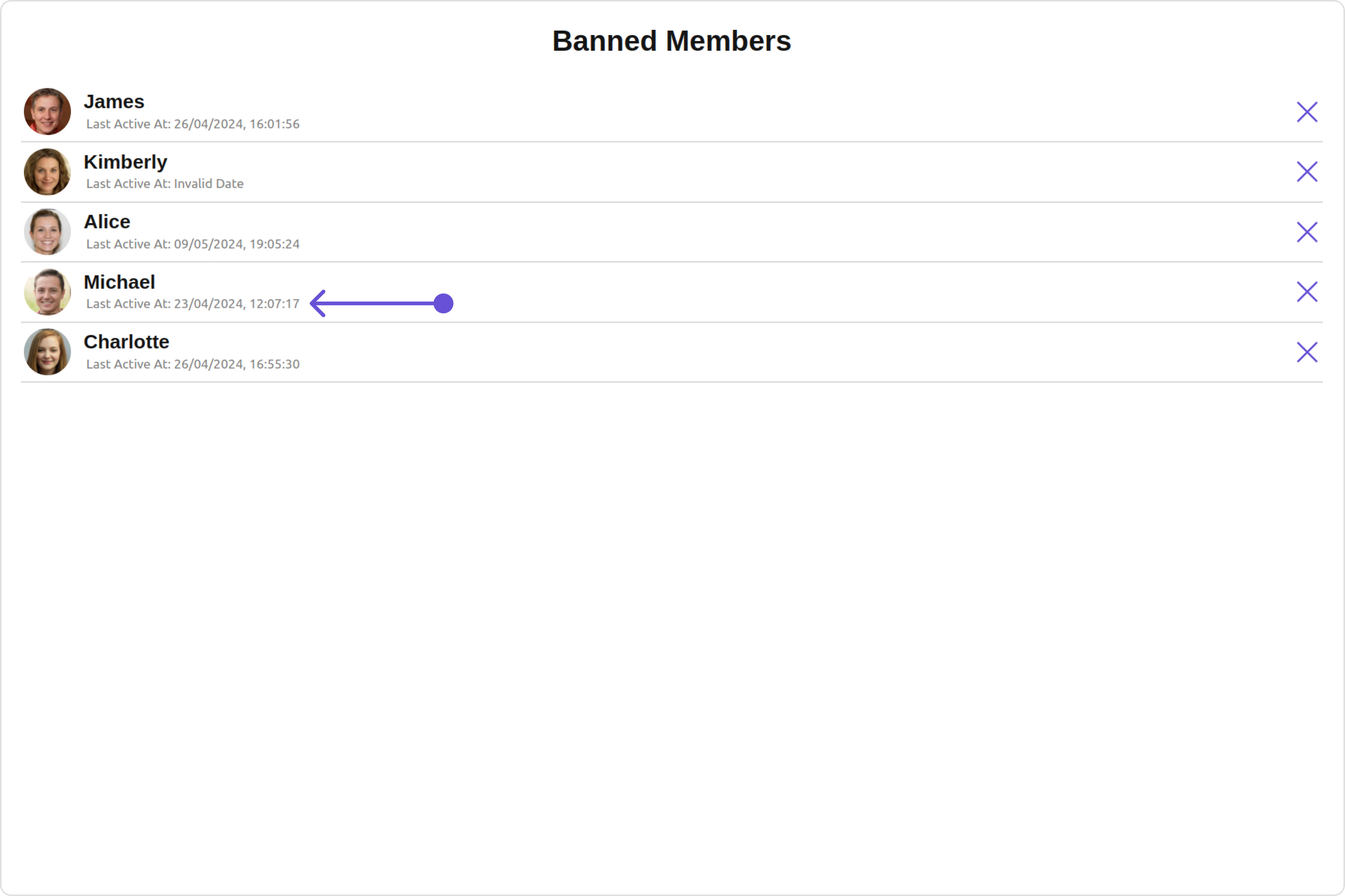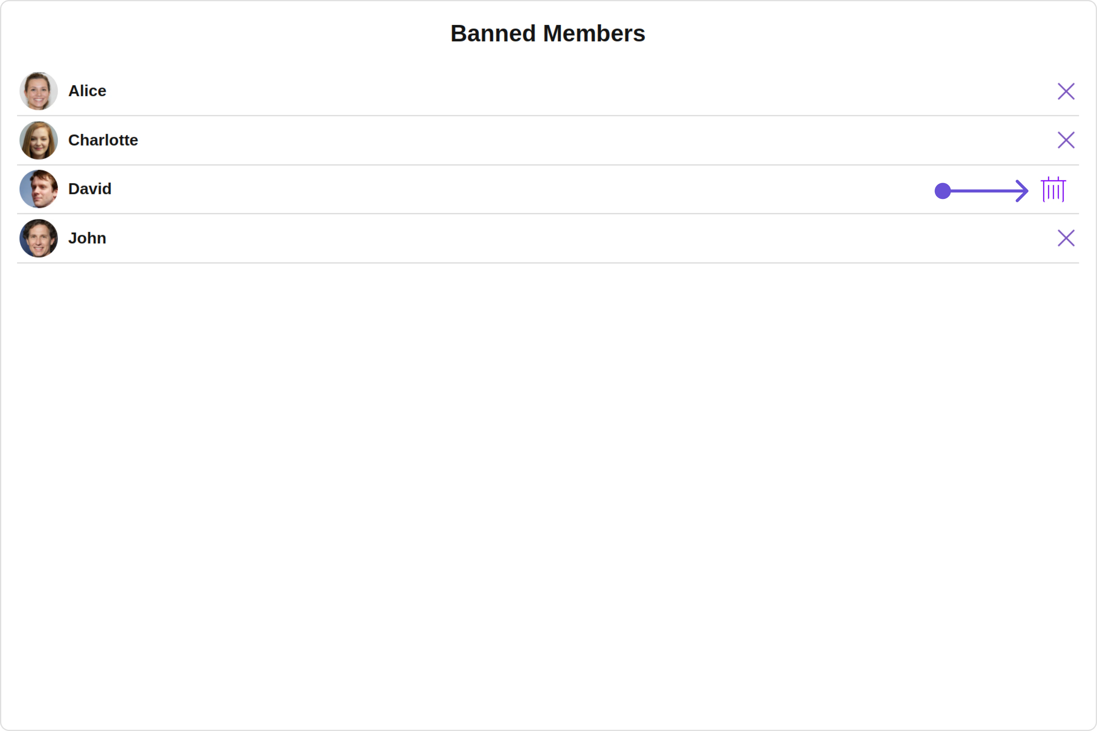 With this property, you can assign a custom ListItem to the Banned Members Component. Example Default:
