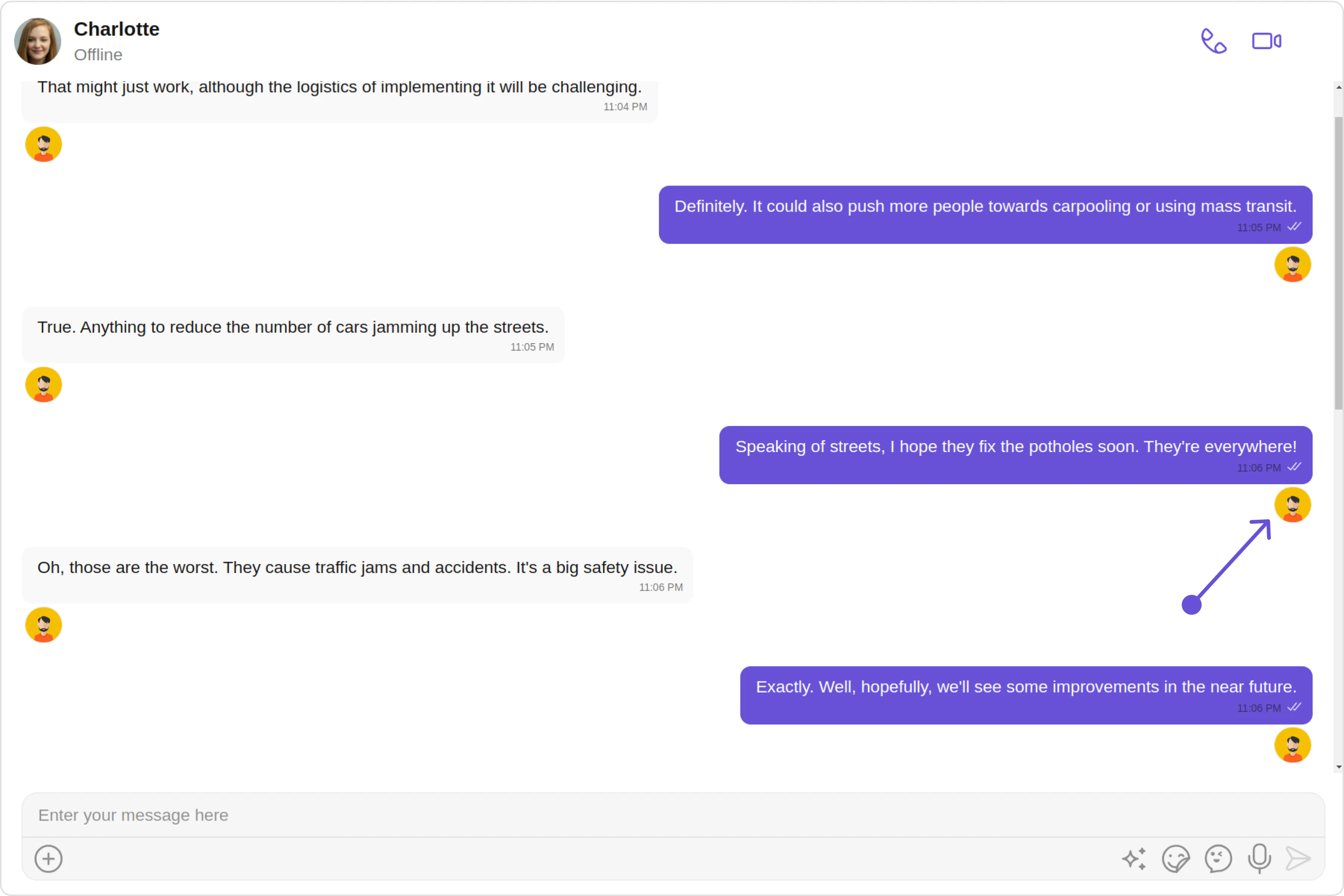 2. Header view: This displays the sender’s name and is especially useful in group chats where multiple users are sending messages.