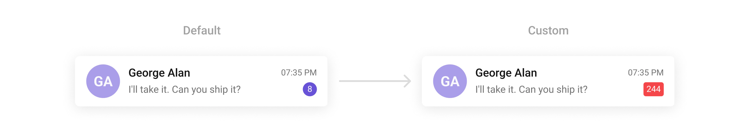 Customize badges for unread messages and notifications.