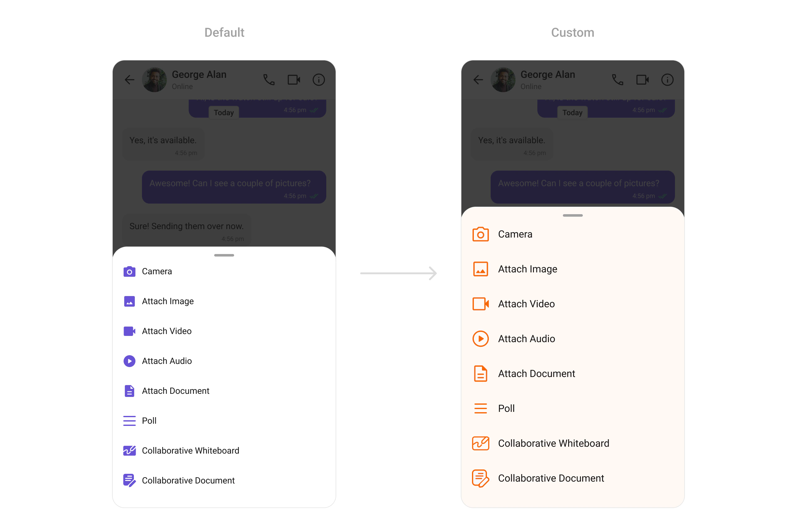 Customize the attachment options menu.