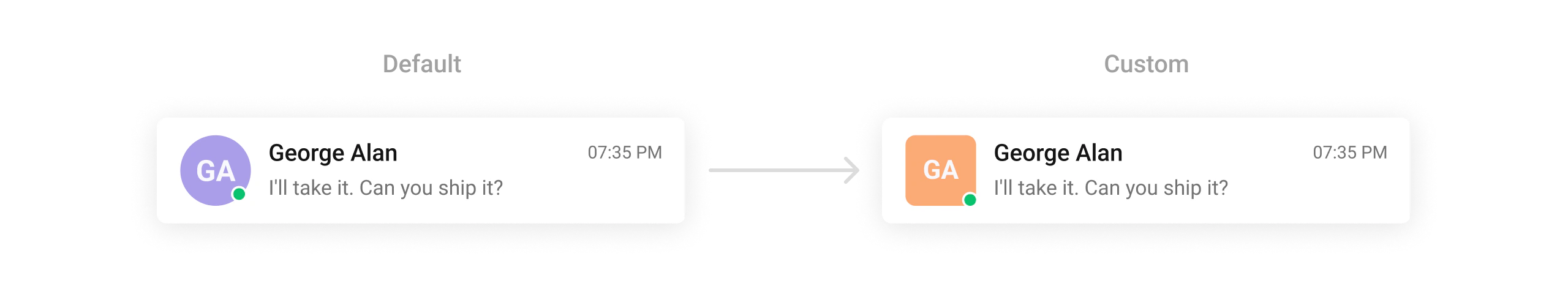 Personalize user avatars with different shapes, sizes, and borders.