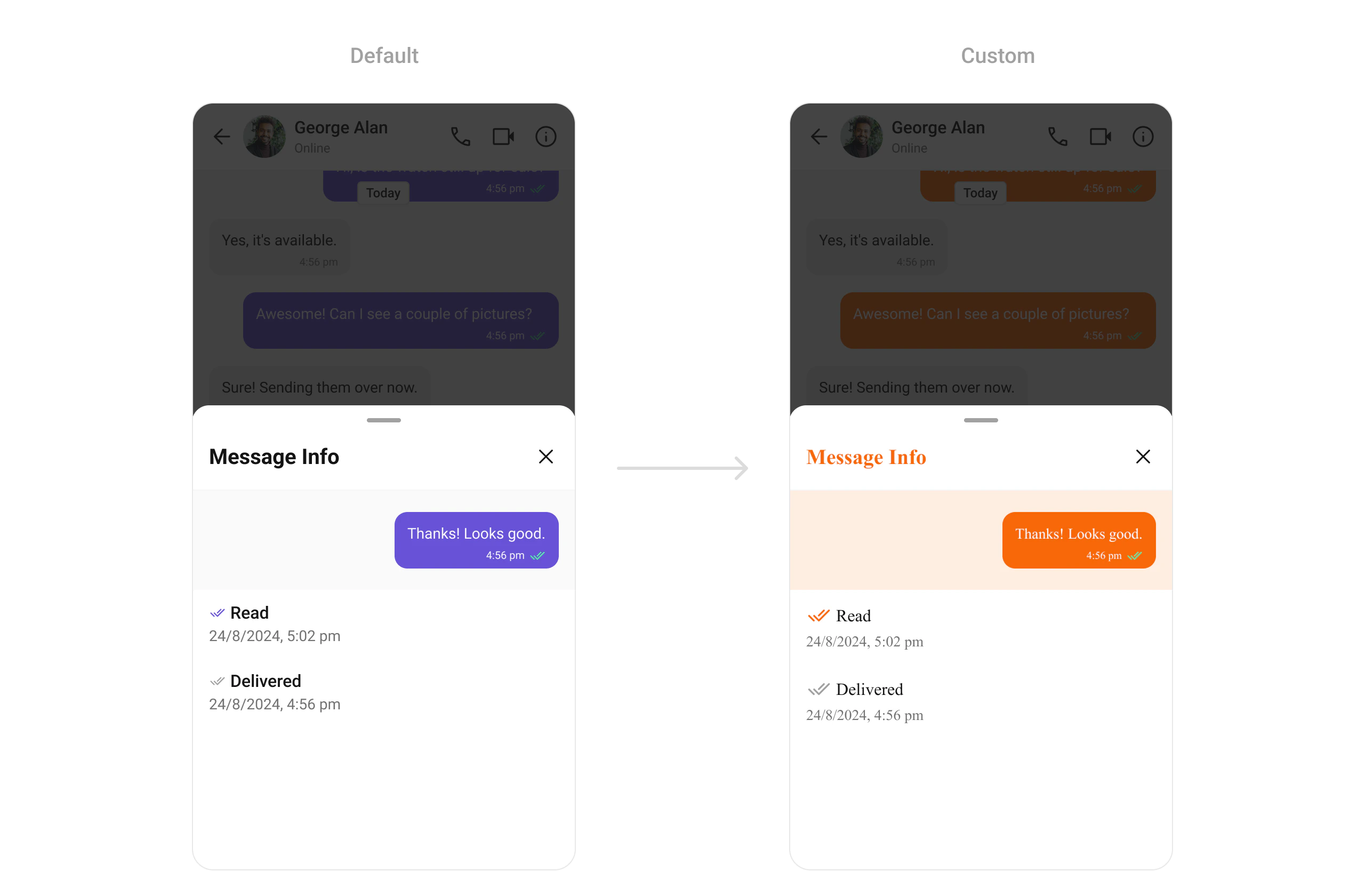 Customize the appearance of message receipts (e.g., “Seen,” “Delivered”).