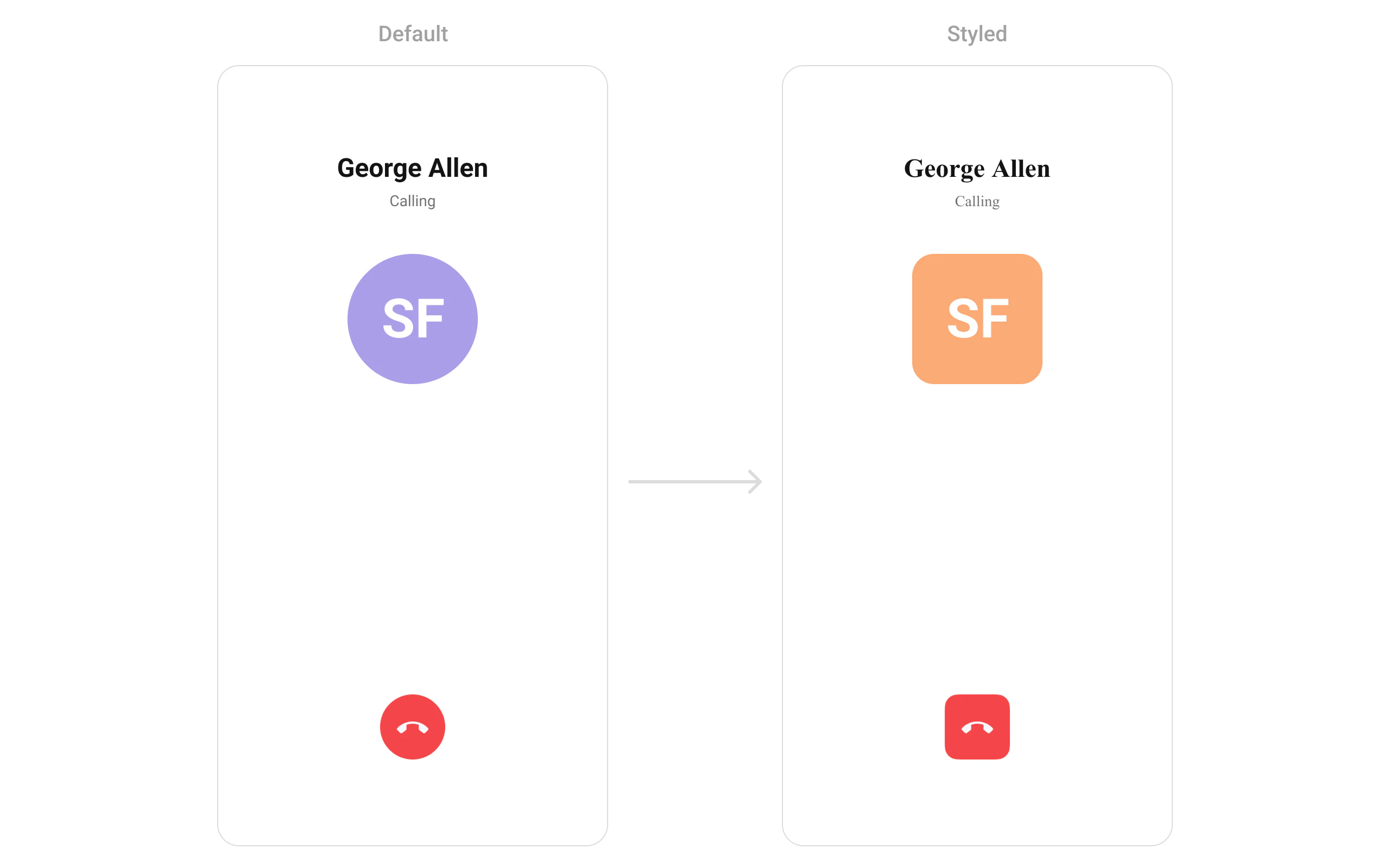 Allows setting a custom cancelled view. Use Cases:- Customize the “End Call” button style.