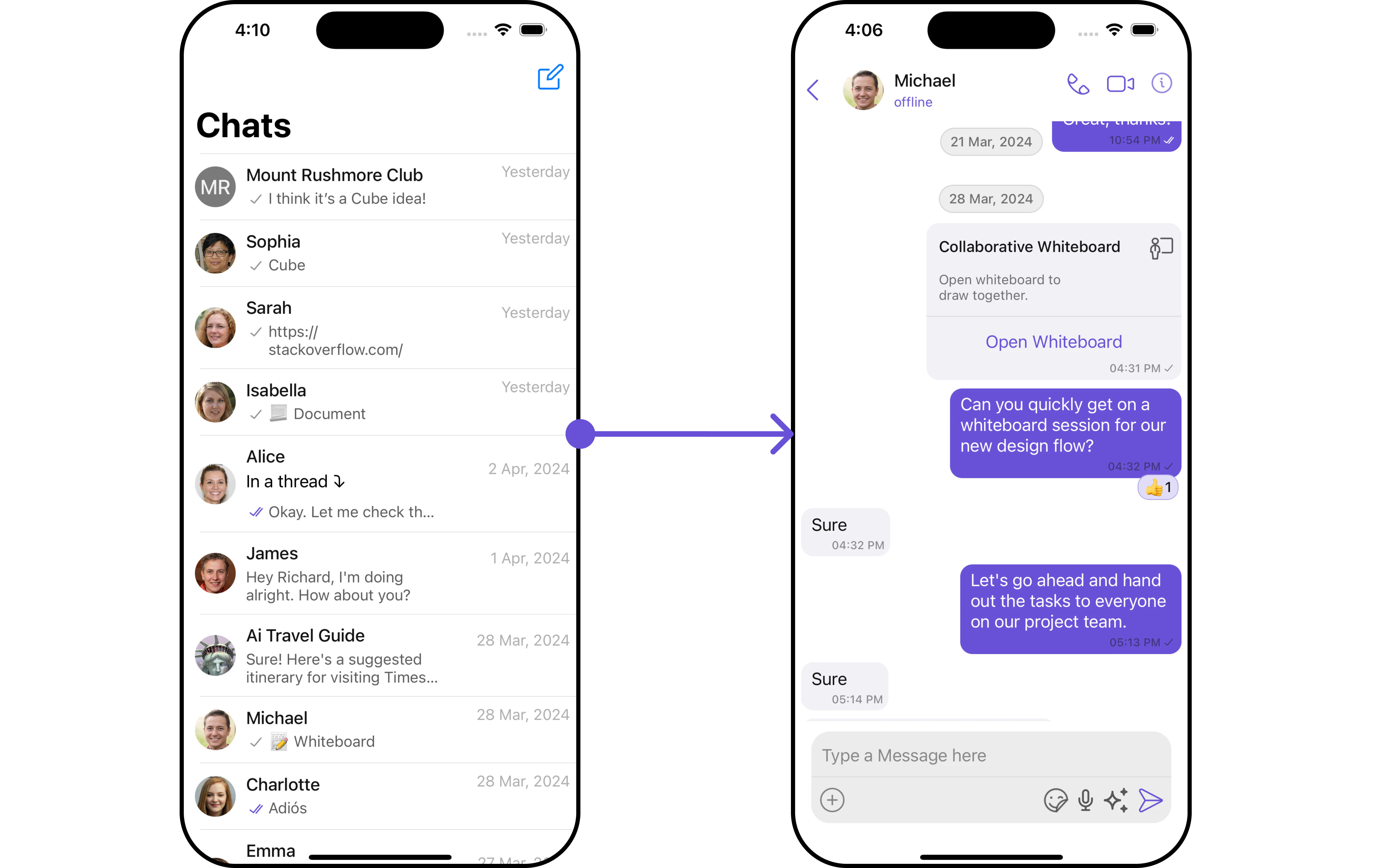 let cometChatConversationsWithMessages = CometChatConversationsWithMessages()