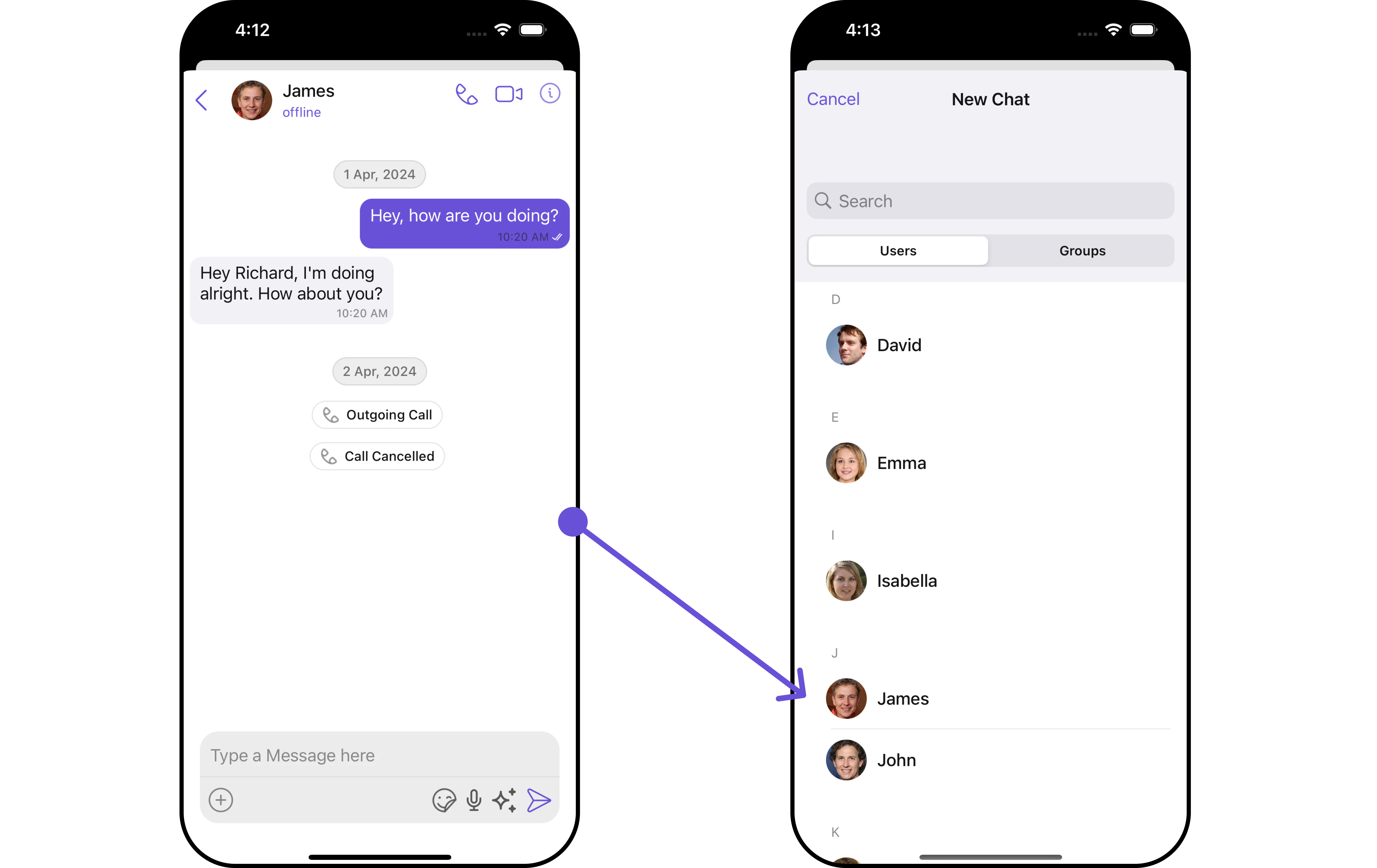 Since CometChatConversationsWithMessages is a view controller, it can be launched either by a button click or through any event’s trigger. It inherits all the customizable properties and methods of CometChatConversations. View Controller: To use ConversationsWithMessages in your view controller, use the following code snippet.