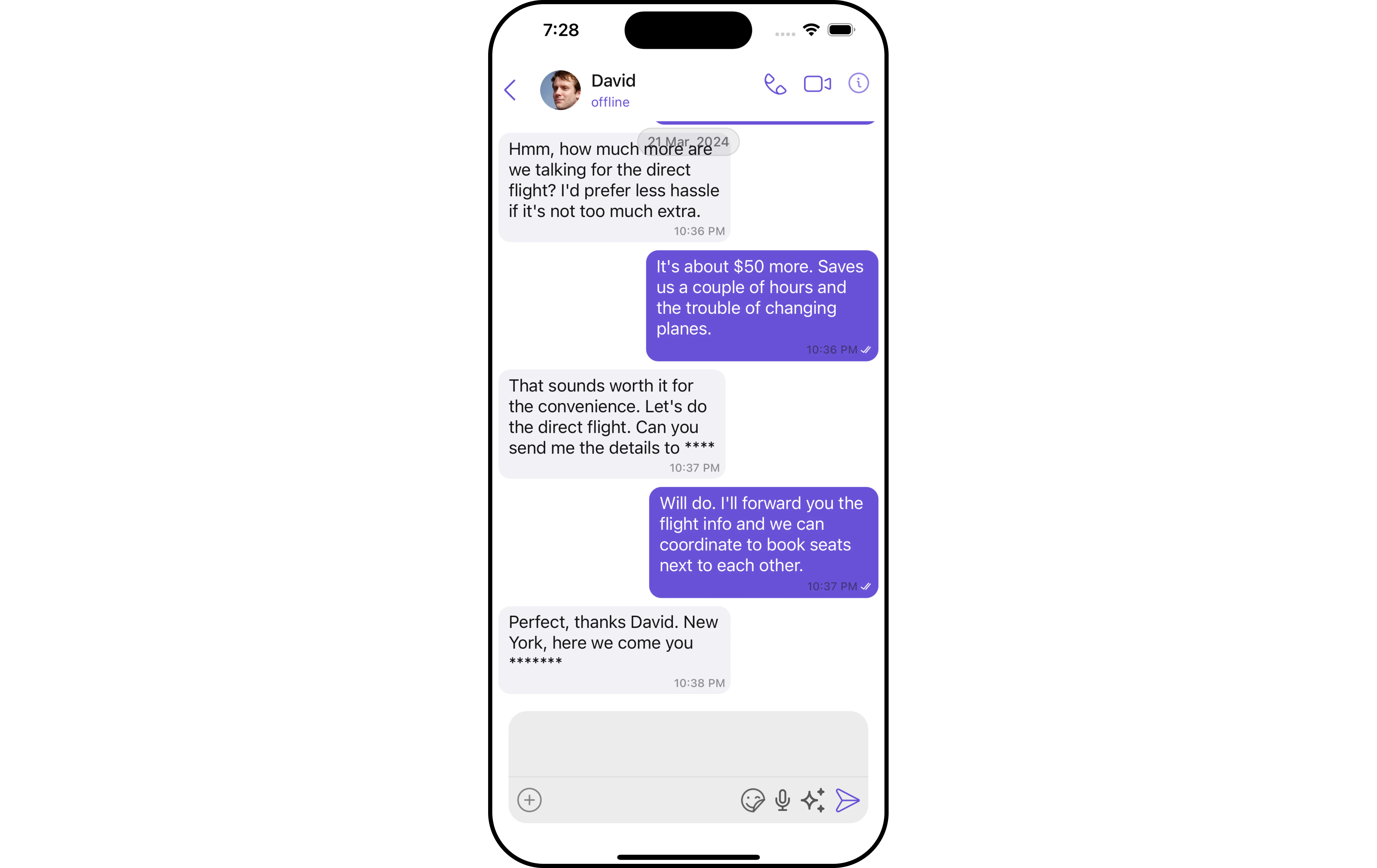 The Data Masking extension helps secure sensitive data by masking information like credit card numbers and phone numbers in a chat message. For a comprehensive understanding and guide on implementing and using the Data Masking Extension, refer to our specific guide on the Legacy Extensions. Once you have successfully activated the Data Masking Extension from your CometChat Dashboard, the feature will automatically be incorporated into the Message Bubble of MessageList Component component of UI Kits.