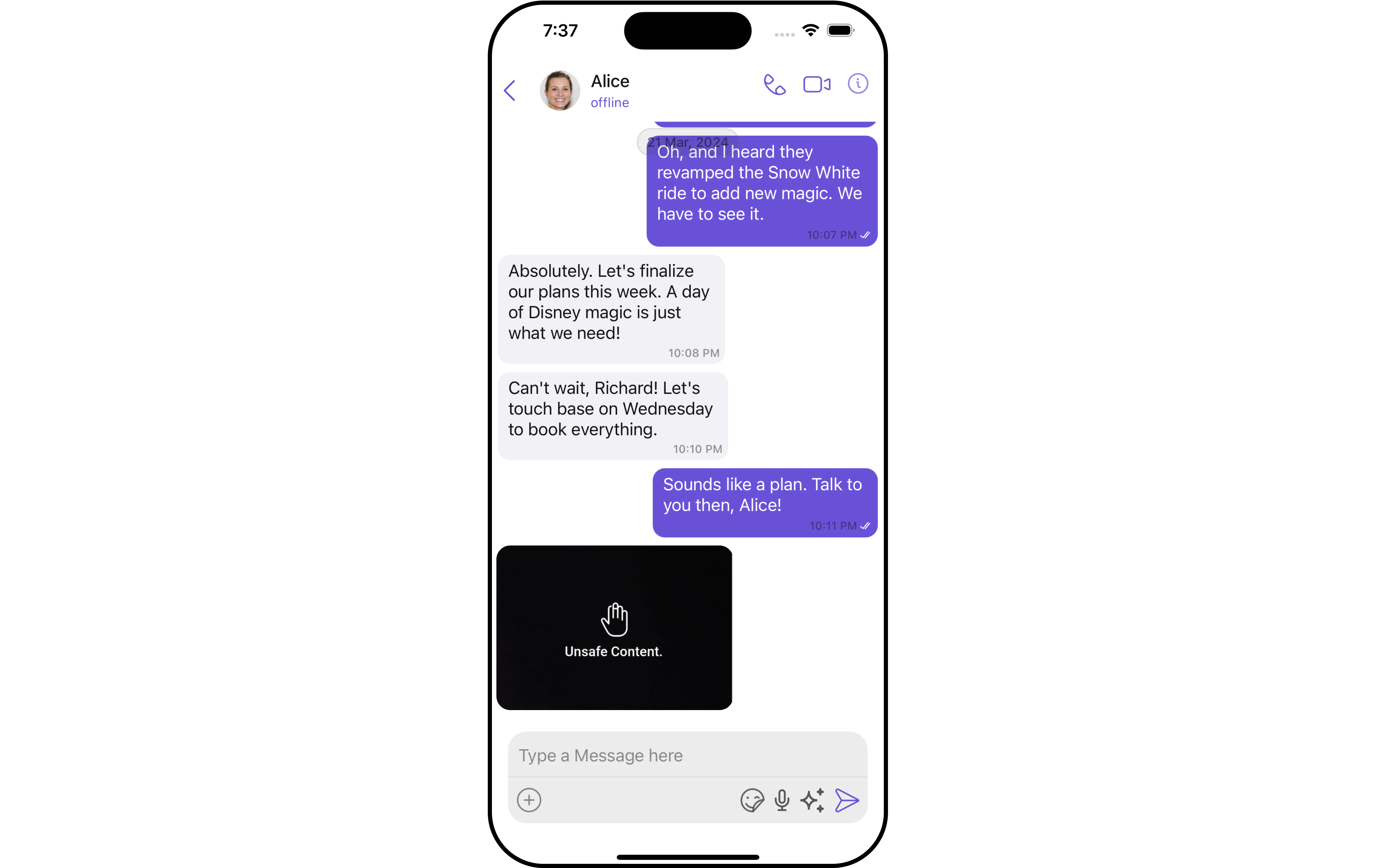 The Image Moderation extension uses machine learning to detect and filter out inappropriate or explicit images shared in the chat. For a comprehensive understanding and guide on implementing and using the Image Moderation Extension, refer to our specific guide on the Legacy Extensions. Once you have successfully activated the Image Moderation Extension from your CometChat Dashboard, the feature will automatically be incorporated into the Message Bubble of MessageList Component component of UI Kits.