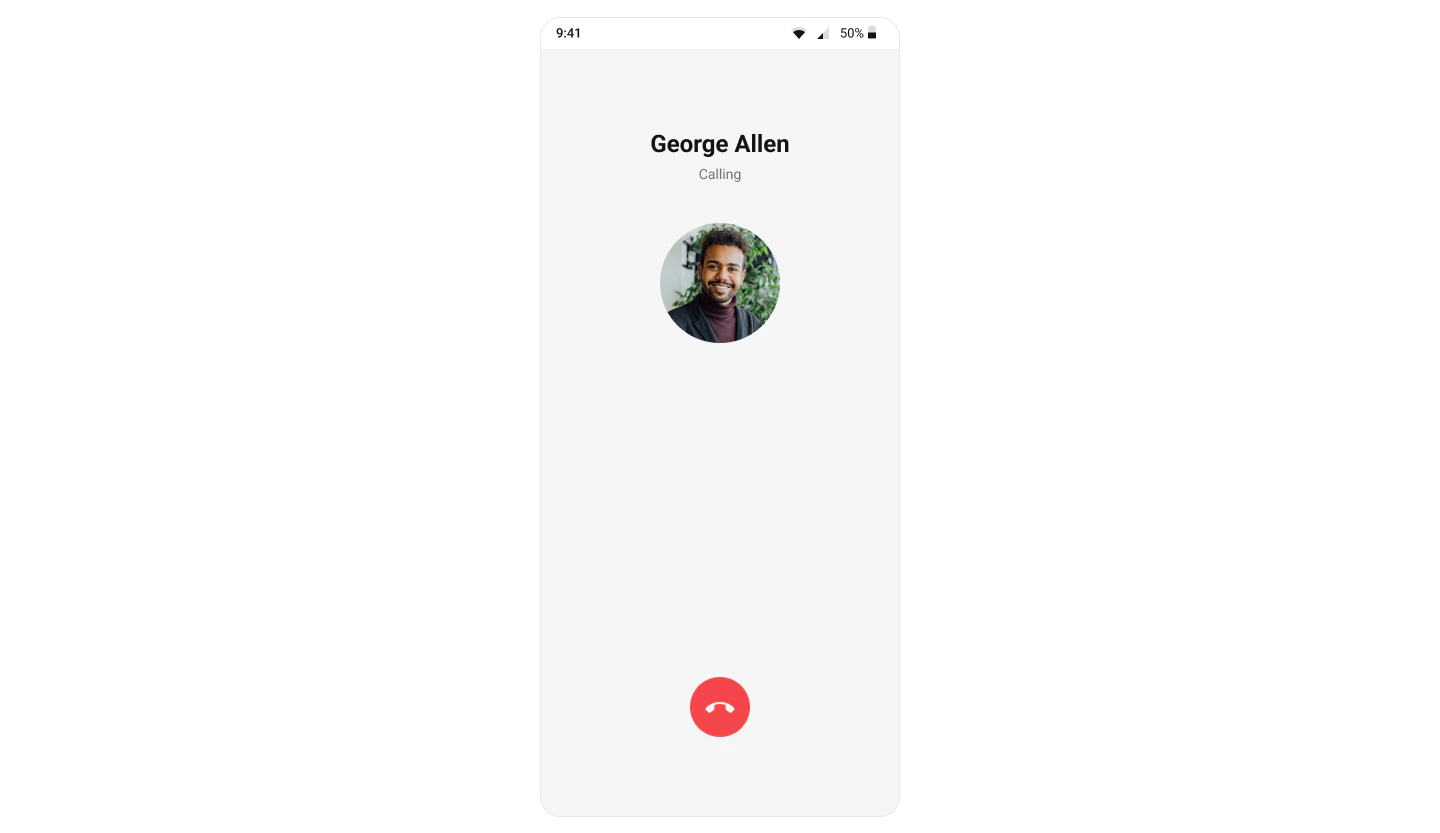 The Outgoing Call component of the CometChat UI Kit is designed to manage the outgoing call process within your application. When a user initiates an audio or video call to another user or group, this component displays an outgoing call screen, showcasing information about the recipient and the call status. Importantly, the Outgoing Call component is smartly designed to transition automatically into the ongoing call screen once the receiver accepts the call. This ensures a smooth flow from initiating the call to engaging in a conversation, without any additional steps required from the user.
