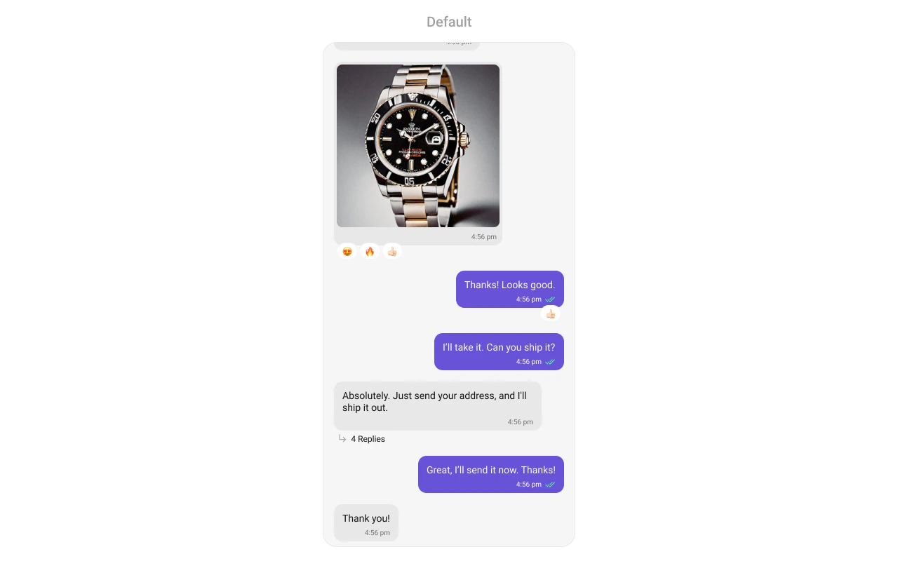 To fit your app’s design requirements, you can customize the appearance of the conversation component. We provide exposed methods that allow you to modify the experience and behavior according to your specific needs.Style