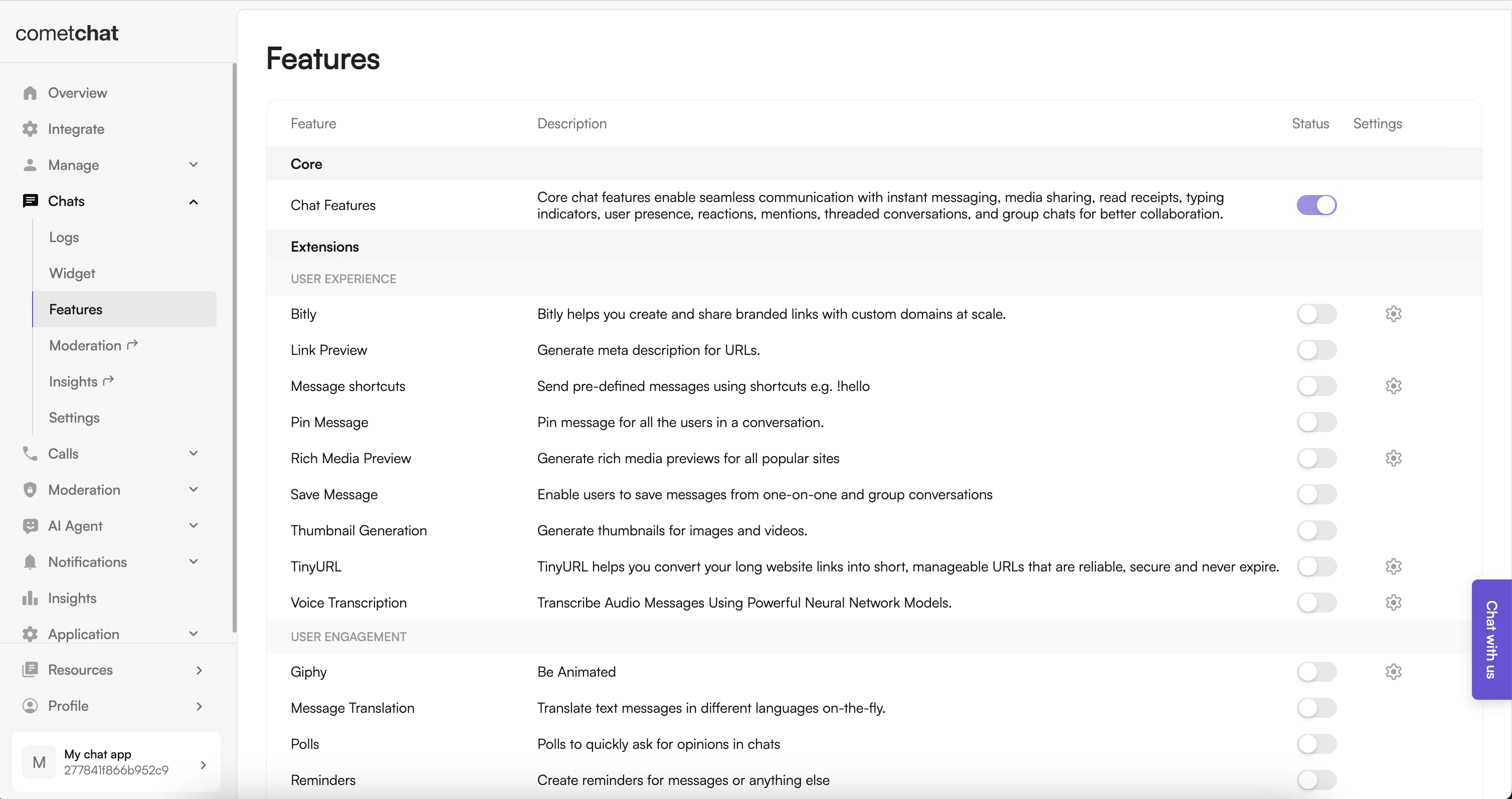 3. Enable Features - Enable additional features in the CometChat Dashboard if required.
