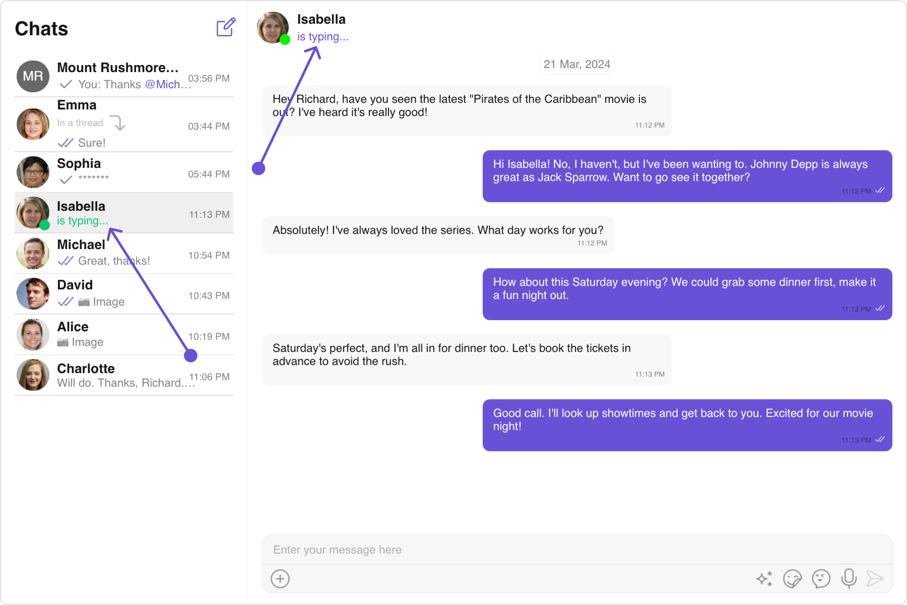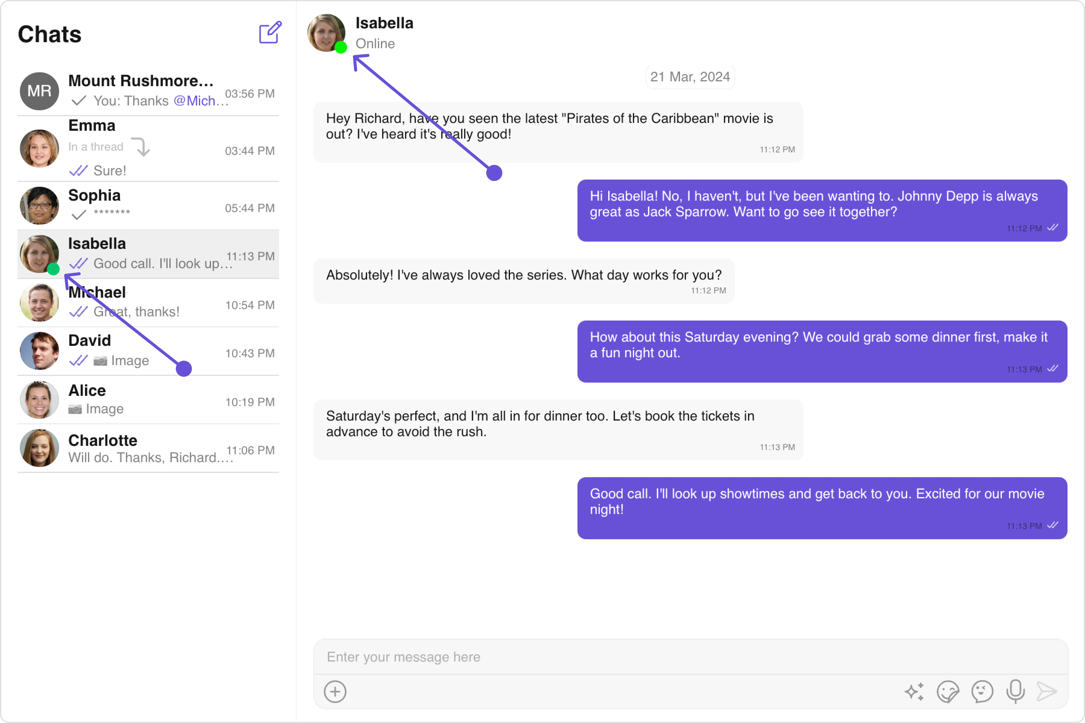 CometChat’s User Presence feature allows users to see whether their contacts are online, offline. This helps users know the best time to initiate a conversation and sets expectations about response times.