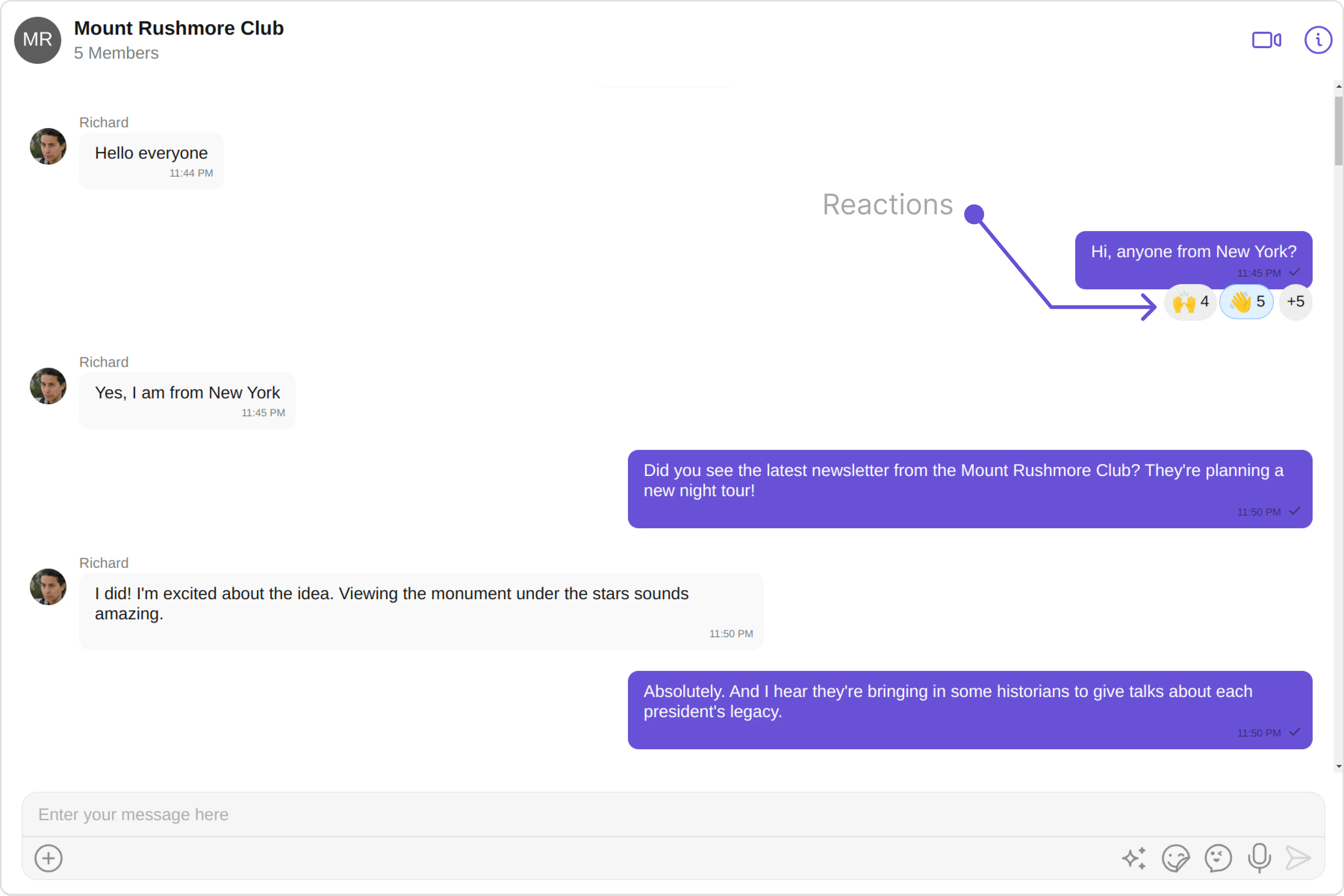 CometChat’s Reactions feature adds a layer of expressiveness to your chat application by allowing users to react to messages. With Reactions, users can convey a range of emotions or express their thoughts on a particular message without typing out a full response, enhancing their user experience and fostering greater engagement.