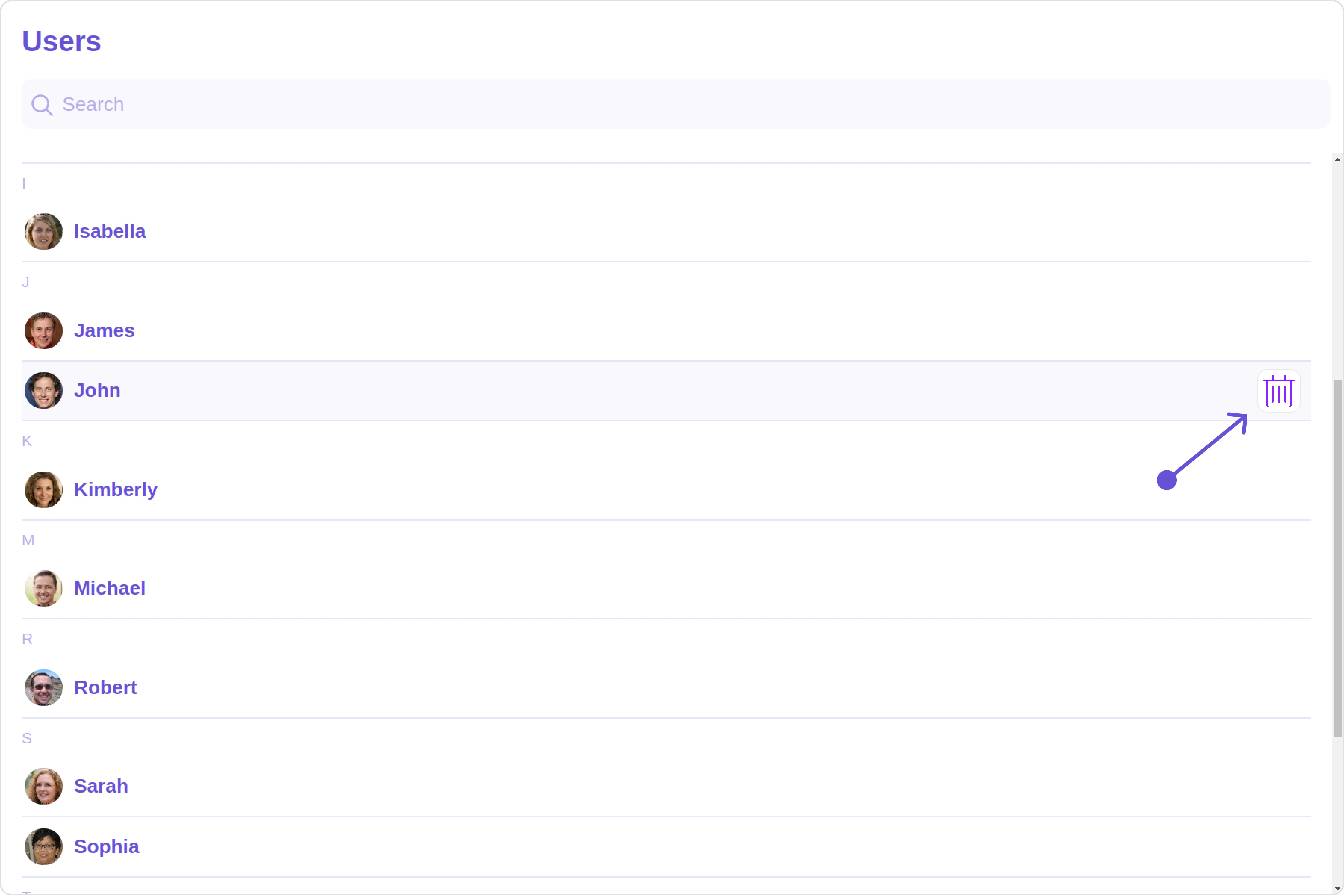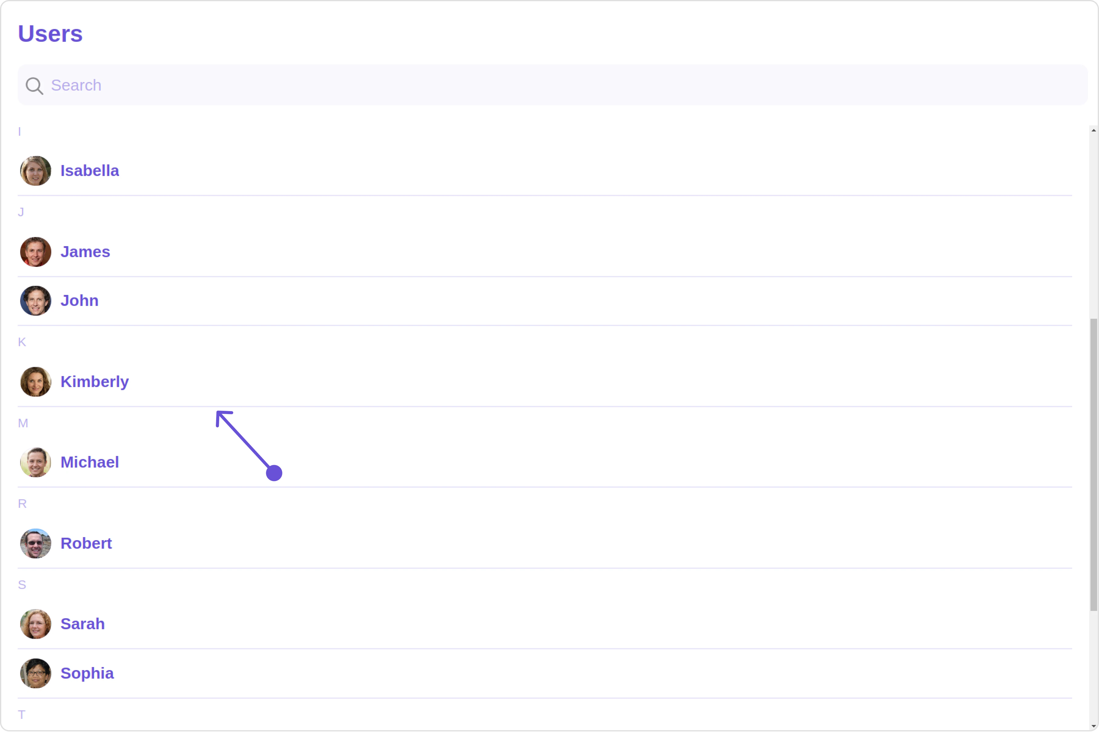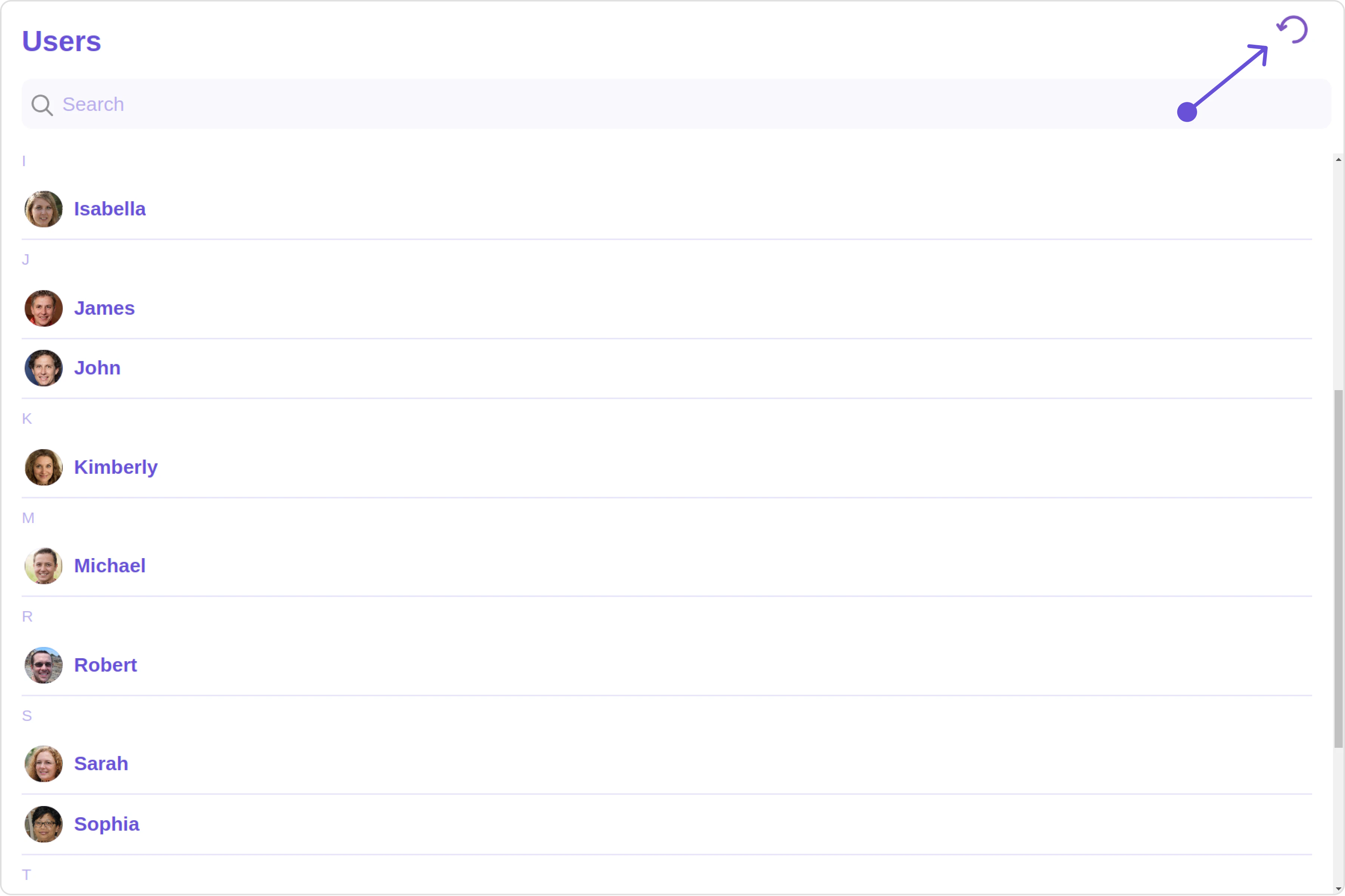 To fit your app’s design requirements, you can customize the appearance of the Users component. We provide exposed methods that allow you to modify the experience and behavior according to your specific needs.